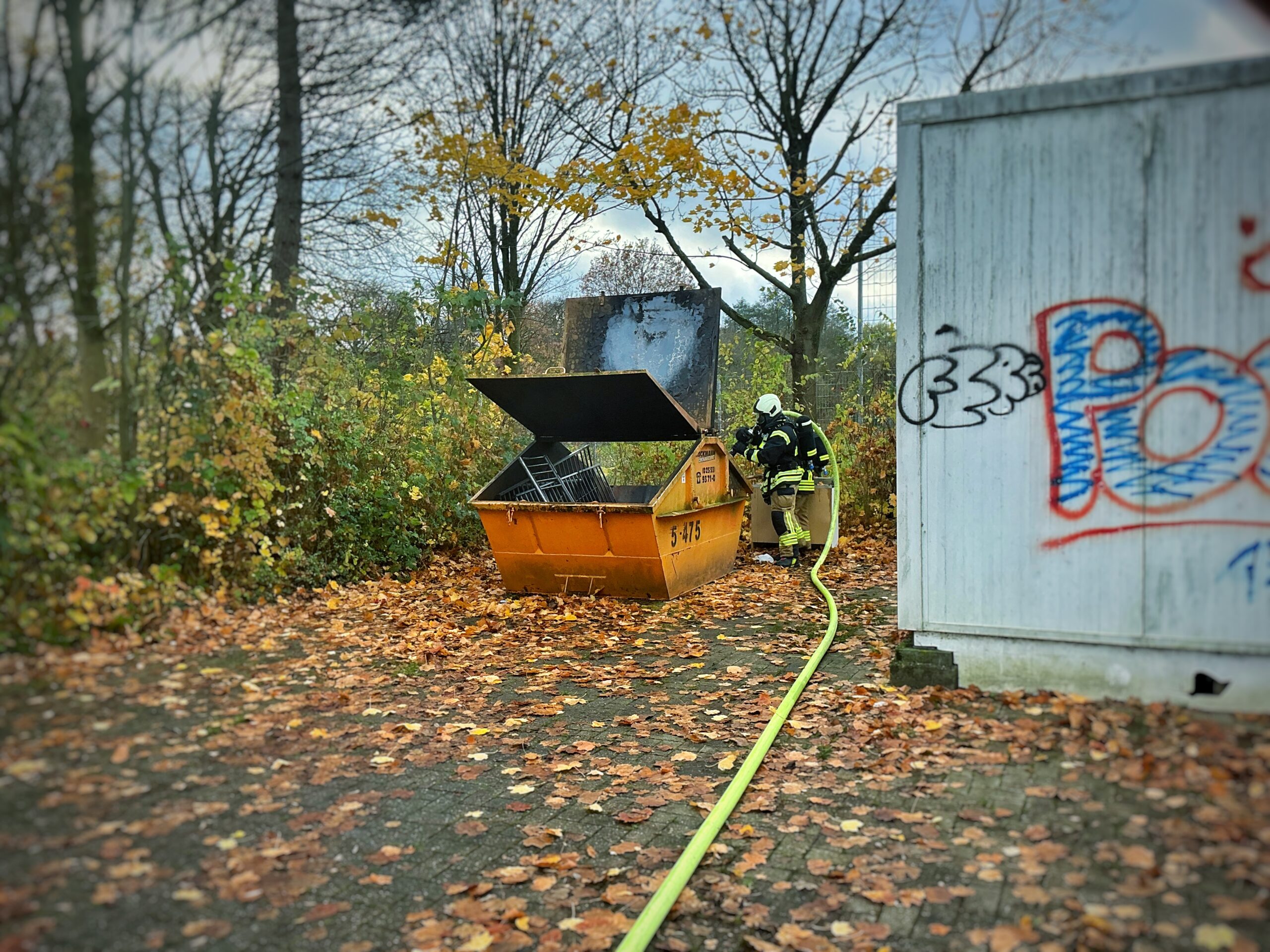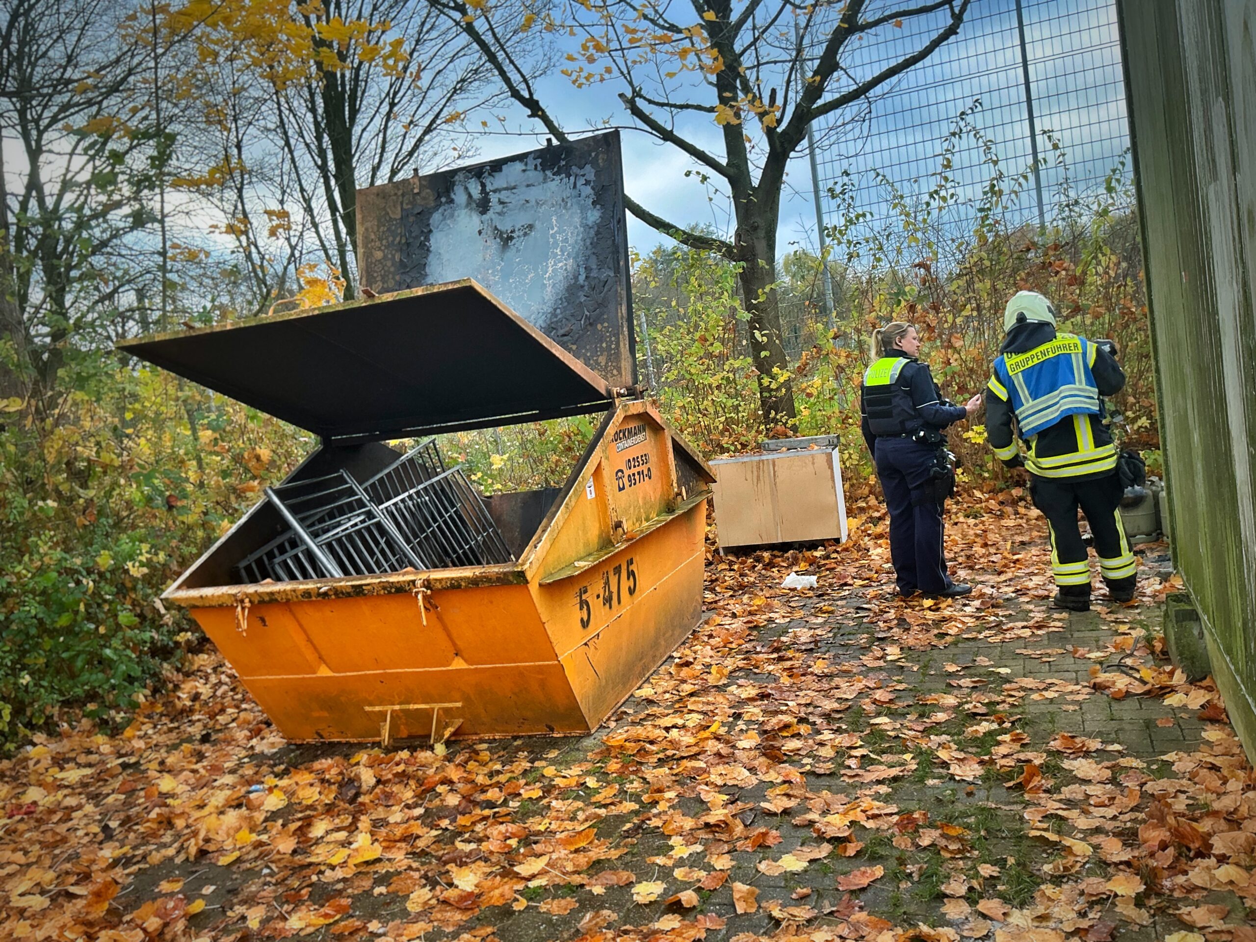 Beim Eintreffen der ersten Kräfte der Feuerwehr bestätigte sich die Meldung. Aus einem 5-m³-Container, der sich im hinteren Bereich des Geländes an der Grenze zur Sportanlage befand, drang dichter Rauch. Nach ersten Informationen der bereits vor Ort befindlichen Polizeibeamten hatte ein Passant die Klappe des Containers geschlossen, um dem Brandherd die Sauerstoffzufuhr zu entziehen.
