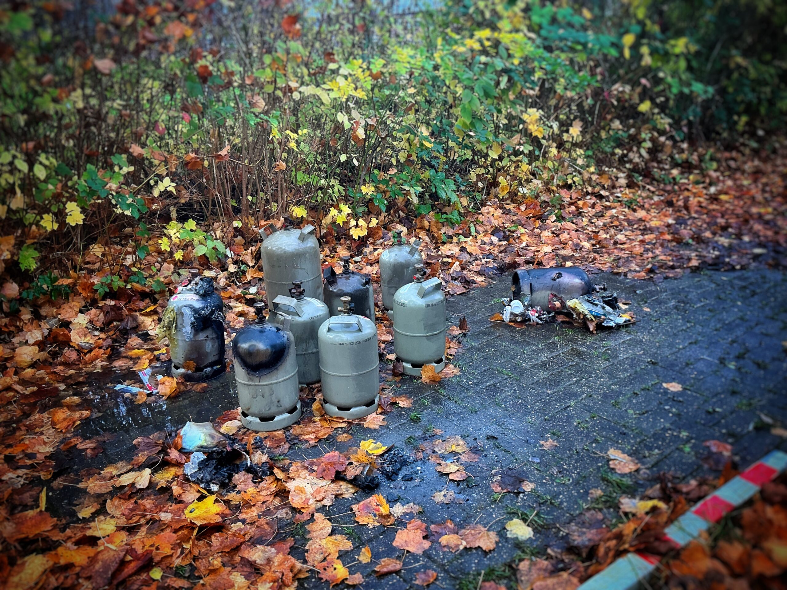 Nach Abschluss der feuerwehrtechnischen Maßnahmen wurde die Einsatzstelle an die Polizei übergeben, die sowohl die Ermittlungen zur Brandursache aufgenommen hat als auch den Abtransport der Gasbehälter veranlasste.