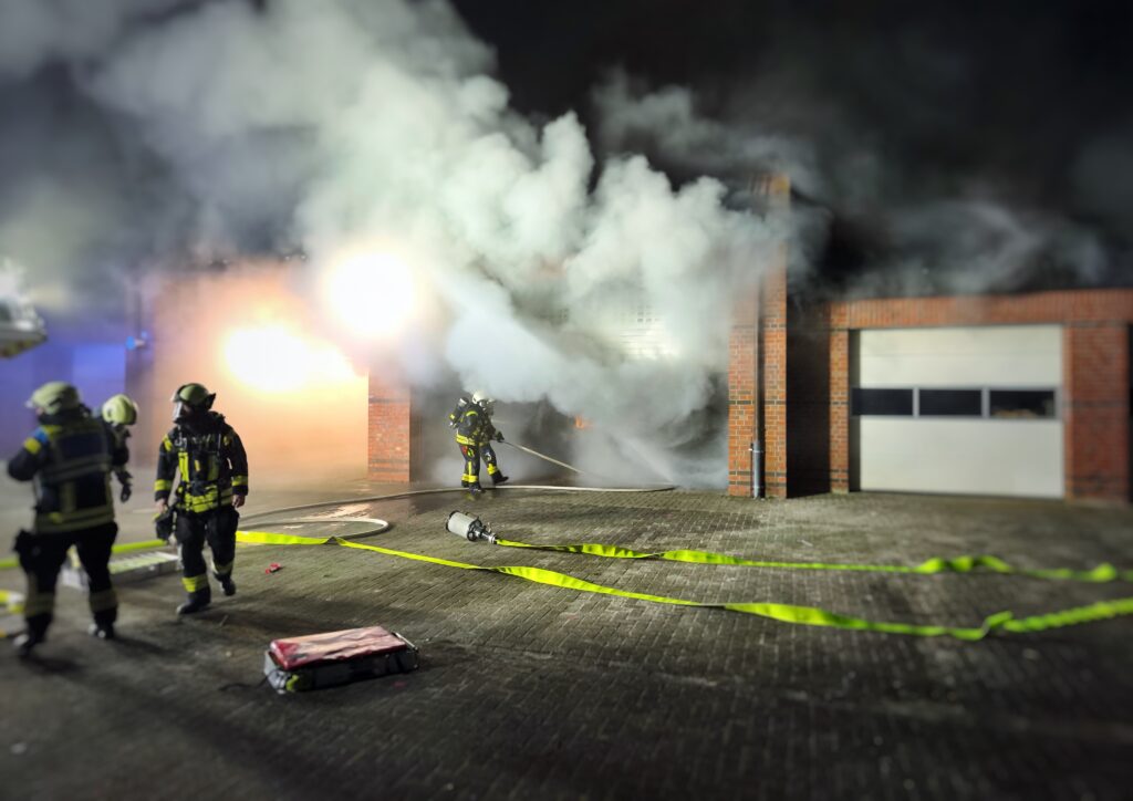 Gegen kurz vor 18:00 Uhr bemerkte ein Mitarbeiter eines örtlichen Energieversorgers im Bereich Witthagen eine starke Rauchentwicklung aus einer Garage auf dem Betriebsgelände und alarmierte umgehend die Feuerwehr. Im Inneren der Garage war eine mobile Netzersatzanlage auf Anhängerbasis in Brand geraten. In unmittelbarer Nähe befand sich zudem eine stationäre Tankstelle mit rund 1.000 Litern Diesel-Kraftstoff, was die Lage zusätzlich verschärfte. Die Feuerwehr leitete umgehend Löschmaßnahmen ein und konnte den Brand zügig unter Kontrolle bringen. Durch das schnelle und gezielte Eingreifen der Einsatzkräfte gelang es, eine weitere Ausbreitung des Feuers sowie größere Schäden erfolgreich zu verhindern.