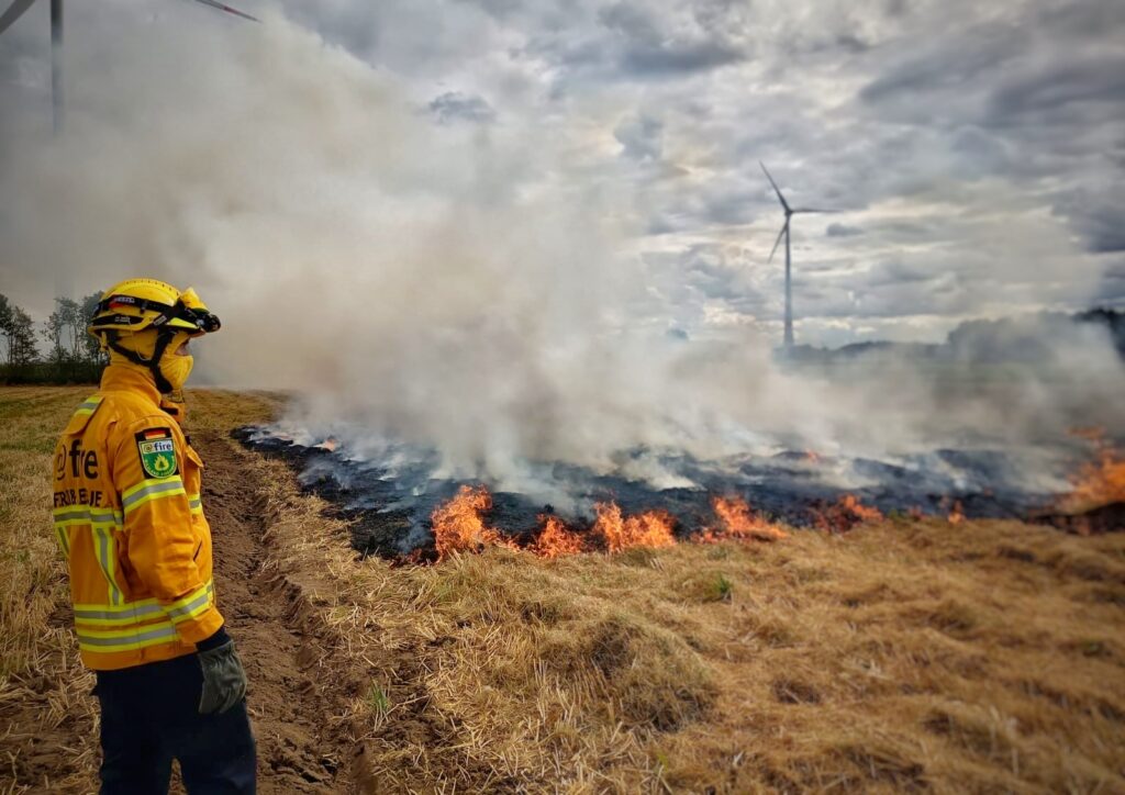 Mitte August wüteten in Teilen Spaniens extreme Waldbrände – ein mahnendes Beispiel für die wachsende Gefahr auch in anderen Regionen. Längere Trockenperioden und ausgedörrte Felder erhöhen das Risiko für Vegetationsbrände, weshalb sich auch die Feuerwehr Ochtrup verstärkt auf diesen Bereich spezialisiert. Im Rahmen eines eintägigen Fachseminars der Organisation „atFire“ wurden die Einsatzkräfte sowohl theoretisch als auch praktisch geschult. Teile eines Stoppelfeldes wurden gezielt entzündet, um die verschiedenen Taktiken der Vegetationsbrandbekämpfung realitätsnah zu trainieren.