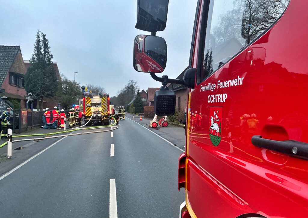 Vollalarm für die gesamte Feuerwehr Ochtrup am Samstagmorgen. Augenzeugen meldeten der Kreisleitstelle Steinfurt eine starke Rauchentwicklung aus dem Gebäude einer Tischlerei an der Metelener Straße. Beim Eintreffen der ersten Einsatzkräfte stellte sich heraus, dass es in einer abgetrennten Werkstatt zu einem Brandereignis gekommen war. Umgehend wurden mehrere Trupps unter Atemschutz zur Brandbekämpfung eingesetzt. Durch das schnelle und koordinierte Eingreifen der Feuerwehr konnte eine weitere Ausbreitung des Feuers verhindert und größerer Schaden abgewendet werden.