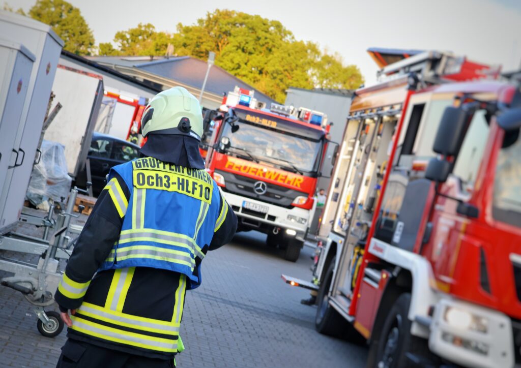 Zunächst eine Verpuffung in der Werkstatthalle eines Post-Standortes, kurze Zeit später ein Brandausbruch in einer Tischlerei – in beiden Fällen mit mehreren vermissten Personen, und das alles auf demselben Gelände. Hinzu kamen drei geflüchtete beziehungsweise verletzte Personen auf einem Balkon und einem Flachdach. Dieses anspruchsvolle Szenario war Teil einer Gesamtübung der Feuerwehr Ochtrup an einem Donnerstag Anfang Mai auf dem Gelände der Tischlerei Lahrkamp an der Metelener Straße. Gemeinsam mit Kräften des Malteser Hilfsdienstes (MHD) und des Deutschen Roten Kreuzes (DRK) wurde das komplexe Einsatzgeschehen realistisch trainiert.