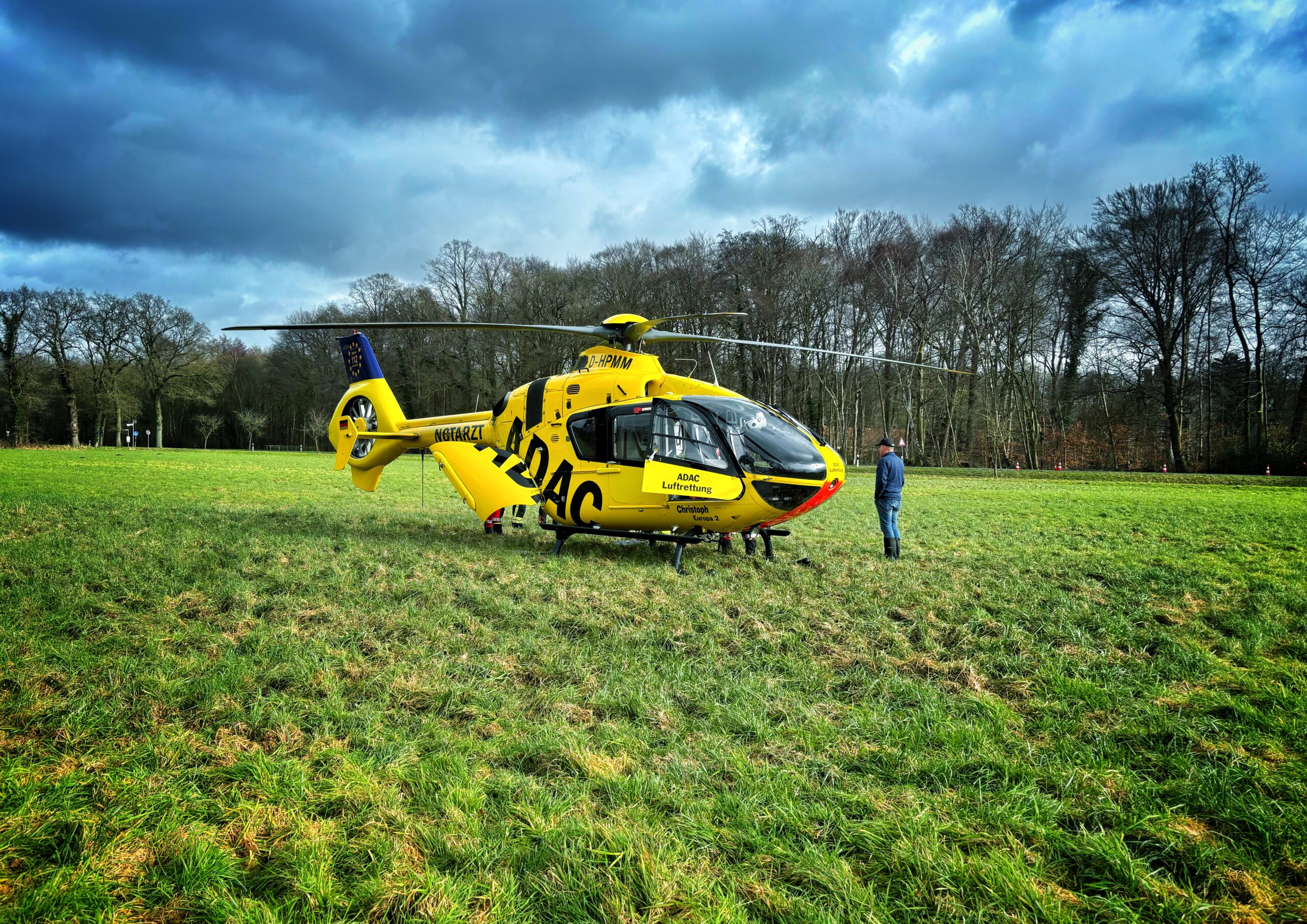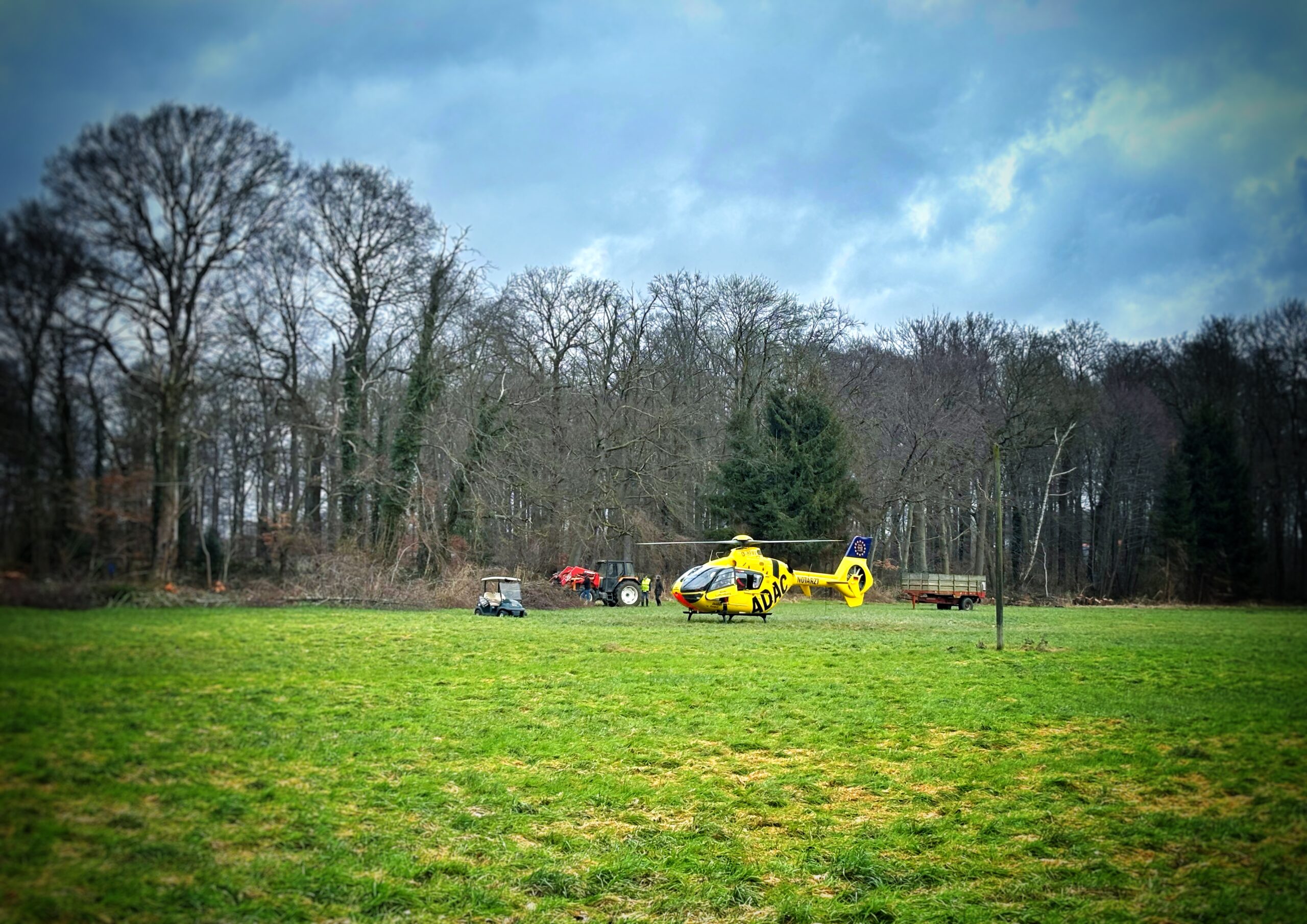 Vor Ort stellte sich heraus, dass ein Mann während Fällarbeiten im genannten Waldstück einen medizinischen Notfall erlitten hatte, was zur Alarmierung des Rettungsdienstes führte. Die Rettungskräfte versorgten den Mann zunächst an der Einsatzstelle. Aufgrund der schwierigen Auffindesituation – mitten zwischen mehreren gefällten Bäumen und langen Marschwegen im unwegsamen Gelände – forderte der Rettungsdienst zusätzlich einen Rettungshubschrauber sowie die Feuerwehr zur Unterstützung an.
