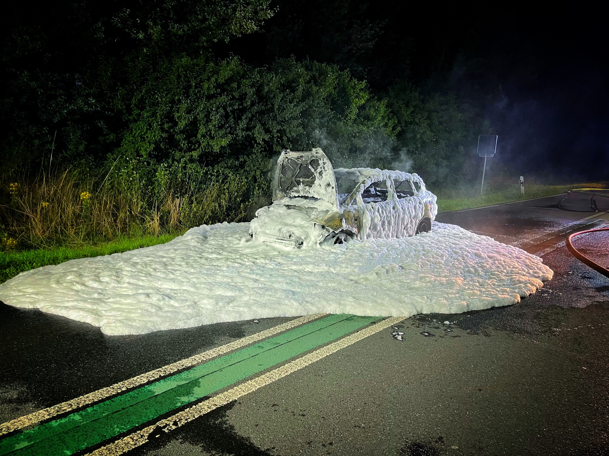 Im Anschluss an die feuerwehrtechnischen Maßnahmen wurde die Einsatzstelle der Polizei übergeben, welche die Einsatzstelle bis zum Eintreffen des Abschleppunternehmens absicherte und über das weitere Vorgehen hinsichtlich möglicher thermisch bedingter Fahrbahnschäden entschied.