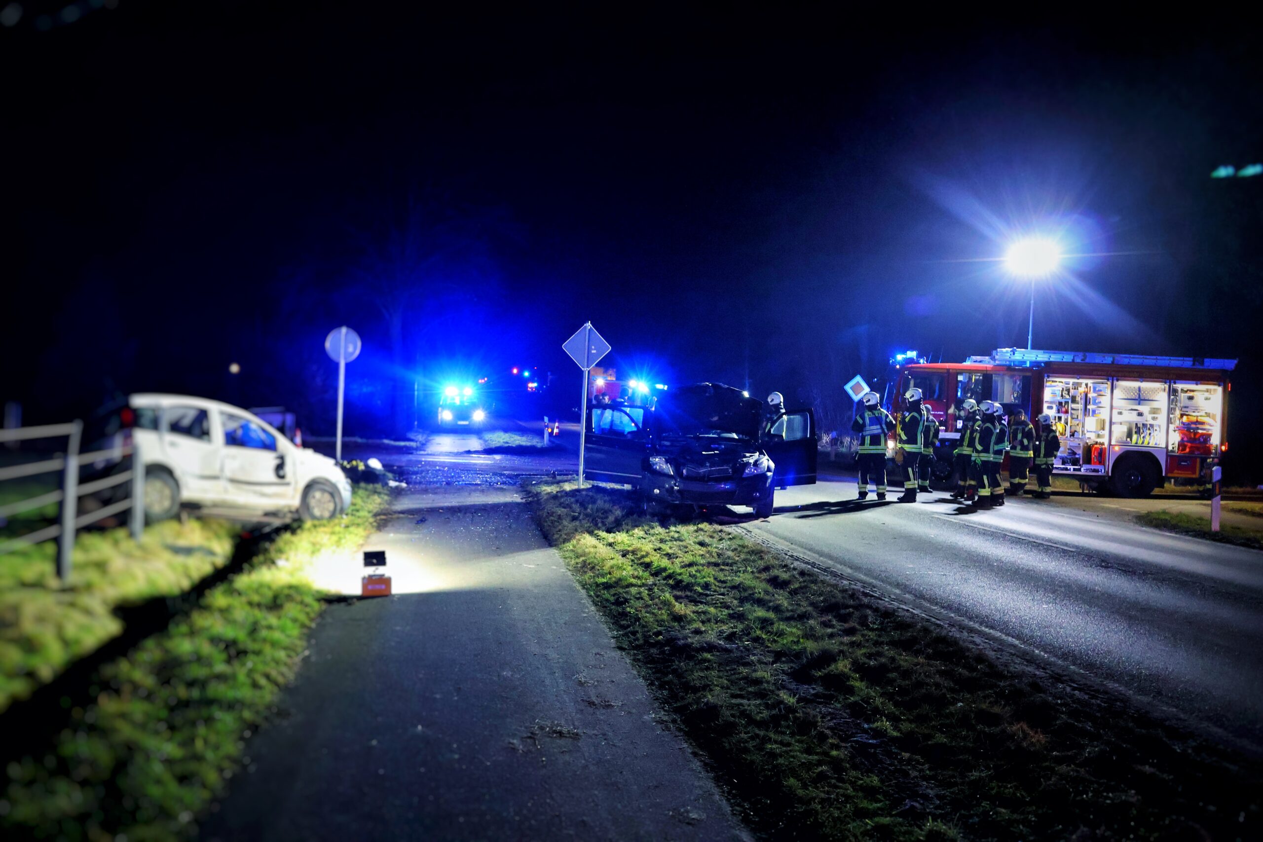 Die Feuerwehr sicherte die Unfallstelle ab und leuchtete diese großflächig aus. Des Weiteren unterstützten die Einsatzkräfte bei der medizinischen Erstversorgung, stellten den Brandschutz sicher und nahmen auslaufende Betriebsstoffe auf.